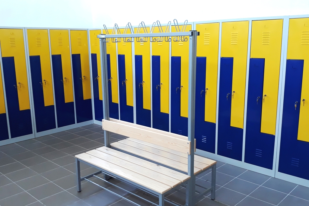 4 db egyoldalas öltözőpad (akasztós, háttámlás)